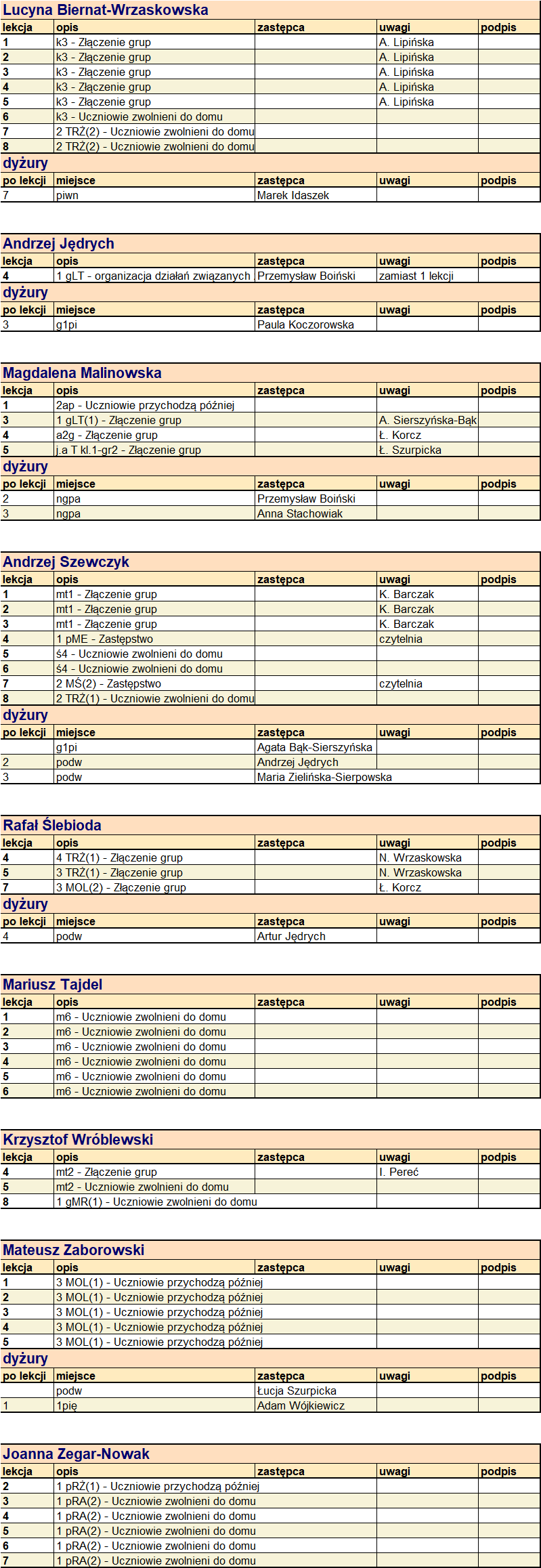 Zastępstwa w Zespole Szkół Rolniczych - 21.01.2020 - wtorek