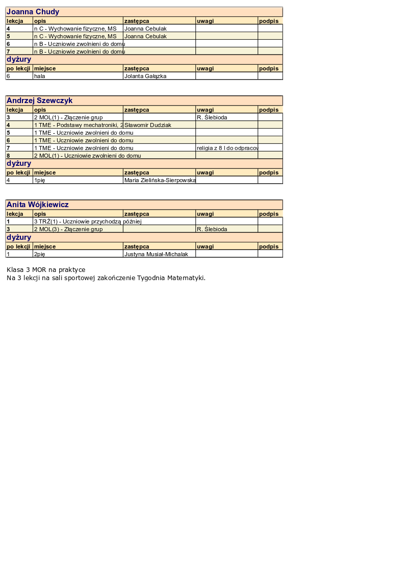 Zastępstwa w Zespole Szkół Rolniczych - 22.03.2019 - piątek